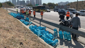 Eyüpsultan’da kazaya karışan kamyondan düşen damacanalar trafiği aksattı