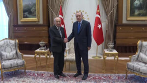Kılıçdaroğlu’ndan seçim sonrası açıklama: Mücadeleye devam edeceğim Cumhurbaşkanı Recep Tayyip Erdoğan, Cumhurbaşkanlığı Külliyesi’nde MHP Genel Başkanı Devlet Bahçeli’yi kabul etti.Ankara (IGFA) – Cumhurbaşkanı Recep Tayyip Erdoğan, iki saatlik kabine toplantısının ardından Milliyetçi Hareket Partisi Genel Başkanı Bahçeli’yi kabul etti. İki liderin Cumhurbaşkanlığı Külliyesi’ndeki görüşmesi 45 dakika sürdü. Liderler toplantısında seçim sonuçları değerlendirildi. Cumhur İttifakı çatısı …
