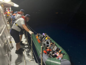 Balıkesir’in Ayvalık ilçesi açıklarında yasa dışı yollardan Yunanistan’ın Midilli Adası’na gitmeye çalışırken geri itilen 45 düzensiz göçmen kurtarıldı. Ayvalık’tan denize açılan yabancı uyrukluların bulunduğu lastik bot, Ege Denizi’nde Yunan unsurlarınca patlatılarak Türk kara sularına itildi. Botu fark eden Sahil Güvenlik Komutanlığı ekipleri hemen harekete geçerek TCSG-905, KB-4510 ve KB-4305 botuyla bölgeye ulaştı. Aralarında kadın ve …
