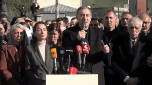 DEM Parti Meclis Grubu, Mardin’in Nusaybin ilçesindeki Sınır Parkı’nda toplandı. Eş Genel Başkanlar Tülay Hatimoğulları ve Tuncer Bakırhan, toplantı öncesinde partililerle birlikte Suriye’deki Kürtlere yönelik saldırıları protesto etmek için yürüdü. “Bu katliamı başlatan HTŞ güçlerini kınıyoruz” Tülay Hatimoğulları, toplantıda yaptığı konuşmada, şunları kaydetti: “Partilerin birçoğunun grup yaptığı gün bizler DEM Parti olarak normal şartlarda bugün …