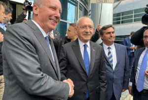 Cumhuriyet Halk Partisi Genel Başkanı ve Millet İttifakı’nın Cumhurbaşkanı Adayı Kemal Kılıçdaroğlu, Vatan Partisi Genel Başkanı ve Cumhurbaşkanı Adayı Muharrem İnce ile görüştü. Kılıçdaroğlu, saat 17.00’de Vatan Partisi genel merkezine gelen İnce tarafından kapıda karşılandı. Kılıçdaroğlu’na CHP Genel Başkan Yardımcısı Oğuz Can Saliçi, CHP Genel Sekreteri Selin Sayk Bök, Grup Başkan Yardımcıları Engin Özkos ve …