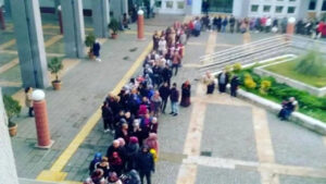 Erzurumlular eksi 5 derece ve yoğun kar yağışında ucuz et almak için Et ve Süt Vakfı (ESK) mağazası önünde uzun kuyruk oluşturdu. Etin piyasadan daha ucuza satıldığı ESK dükkânlarının önünde uzun kuyruklar oluşuyor. Erzurum’un merkezî Yakutistan ilinin Giz ilçesine bağlı ESK mağazası önünde soğuğa ve kar yağışına aldırış etmeden sıraya giren vatandaşlar, “Milletvekilleri ne yapıyor? …