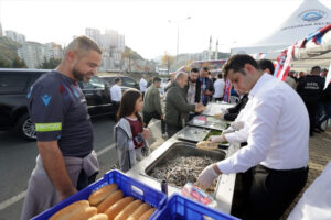 TRABZON (AA) – Trabzonspor Kulübü ile Ortahisar Belediyesinin ortak organizasyonuyla taraftarlara hamsi ikramında bulunuldu. Trendyol Süper Lig’in 14. haftasındaki Trabzonspor-Mondihome Kayserispor karşılaşması öncesi Papara Park yakınında kurulan stantta maça gelen taraftarlara hamsi ikram edildi. Sohbet ettiği taraftarlarla fotoğraf çektiren Trabzonspor Başkanı Ertuğrul Doğan ile yönetim kurulu üyelerinin de katıldığı etkinliğe, bordo-mavililer ilgi gösterdi. Trabzonspor Kulübü …