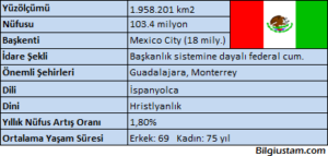 KomşuKuzey Amerika kıtasının güneyinde yer alır.Meksika Körfezi’ne ve Pasifik Okyanusu’na kıyısı vardır.Amerika Birleşik Devletleri, Guatemala ve Belize ile çevrilidir. Yer şekilleriÜlke, doğudan ve batıdan sıradağlarla çevrili bir plato görünümündedir.Başkent Mexico City’nin bulunduğu orta kısım, sık sık depremlere ve volkanik hareketlere sahne oluyor.Ülkede çok sayıda göl ve akarsu bulunmaktadır.Ülkenin kıyı kesimlerinde okyanusal iklim, iç kesimlerinde ise …