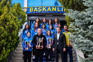 MKE Ankaragücü Kulübü Başkanı Faruk Koca, bayan güreşçileri kabul etti