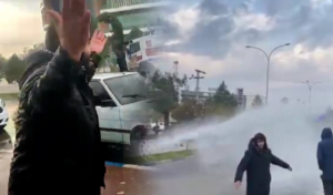 Jandarmadan haklarını arayan emekçilere tazyikli su müdahalesi!