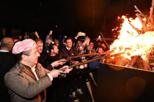 Irak Kürdistan Bölgesel Yönetimi’nde (IKBY) Newroz kutlamaları başladı. Irak Kürdistan Bölgesel Yönetimi Başbakanı Mesrur Barzani, bugün Akre’de gerçekleştirilen Newroz Karnavalı’na katılarak, Newroz ateşini yaktı. Duhok yakınlarındaki Akre’de, çok sayıda genç 2 bin 724 meşale ile Girê Top, Kelê ve Kela Kewvin tepelerine tırmandı. Newroz Bayramı kutlamaları için Akre’de düzenlenen resepsiyona katılan Başbakanı Mesrur Barzani, Kürdistan …