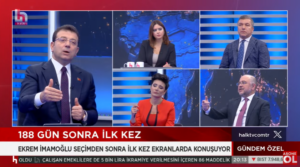 İstanbul Büyükşehir Belediye Başkanı Ekrem İmamoğlu, Halk TV canlı yayınına katıldı. İmamoğlu, şu ifadeleri kullandı: “Umutların tavan yaptığı noktada seçimi kaybettik. Seçimi kaybettikten hemen sonra derlenip toparlanmanın ve kendine gelişin şart olduğunu ortaya koyacak duyguları veremedik. Biz herhangi bir seçim gibi davranarak o geceyi sıradanlaştırdık. Ben ertesi sabah insanlara seslenmek zorunda hissettim kendimi ve yaptım. Milyonlarca …