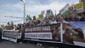 Filistin’e destek veren sivil toplum kuruluşlarının öncülüğünde yaklaşık 600 kişi, İsrail’in Stockholm Büyükelçiği önünde toplandı. “İsrail’e boykot” ve “Soykırımı durdurun” yazılı pankartları açan göstericiler, “Filistin’e özgürlük” sloganları attı. Filistin bayrağı taşıyan göstericiler, İsrail ürünleri ile bu ülkeye destek verdiği belirtilen bazı çok uluslu şirketlerin ürün ve hizmetlerinin boykot edilmesi çağrısında bulundu. Büyükelçilik önünden şehir merkezine …