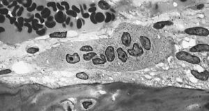 Osteoklast, kemik dokusunun yıkımından sorumlu çok çekirdekli büyük hücrelerdir. Kemik sürekli olarak yapısal değişimler geçiren canlı bir doku olduğundan, kemik kütlesi ve yapısı sürekli olarak değişir ve yenilenir. Osteoklastlar, kemik rezorpsiyonu veya kemik yıkımı sürecini gerçekleştirerek eski, hasarlı veya fazla kemik materyalini uzaklaştırır ve kemiklerin yapısını yenilemeye yardımcı olur. Osteoklastlar, kemiğin iç yapısına nüfuz edebilecekleri …