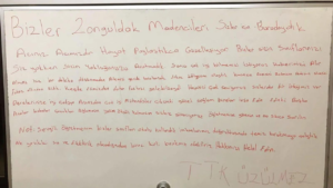 Deprem bölgesinde arama kurtarma çalışması yapan madenciler, Hatay’da kullandıkları derslikte bulunan tahtaya, “İyi okuyup aranızda çok iyi mühendisler olsun ki güzel ve sağlam binalar yapasınız. Emin olun ki anneler, babalar ve diğer çocuklar Ağlamazlar ve öksüz kalmazlar. Notunu bıraktı. Deprem bölgesine giderek arama kurtarma çalışmalarına katılan madenciler, öğrencilere mesaj gönderdi. Depremin ardından bölgeye gönderilen Türkiye’nin …