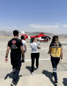 Şırnak’ta boğazına çengelli iğne kaçan bebek, ambulans helikopterle Şanlıurfa’ya sevk edildi