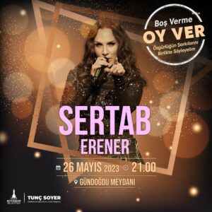 İzmir Büyükşehir Belediyesi, 26 Mayıs’ta saat 21.00’de Gündoğdu Meydanı’nda Sertab Erener’in konserini “Boşver oy ver” sloganıyla veriyor. İzmir Büyükşehir Belediye Başkanı Tunç Soyer, 28 Mayıs’ta herkesi sandığa çağırarak, “Vazgeçmeyeceğiz, birlikte yaşam sahnesine birlikte çıkmak için oy vereceğiz! Sertap’la elimizden geldiğince türkülerimizi söyleyelim” dedi. Erener sahnede. 26 Mayıs saat 21.00’de Gündoğdu Meydanı’nda toplanıyoruz” dedi. Diğer gönderilerimize …