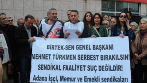 Birleşik Tekstil Dokuma ve Deri İşçileri Sendikası (BİRTEK-SEN) Genel Başkanı Mehmet Türkmen’in tutuklanması, Adana’da düzenlenen ortak bir basın açıklamasıyla protesto edildi. Mezopotamya Ajansı’nın haberine göre; Devrimci İşçi Sendikaları Konfederasyonu (DİSK), Türkiye İşçi Sendikaları Konfederasyonu (Türk-İş), Kamu Emekçileri Sendikaları Konfederasyonu (KESK) ve Birleşik Kamu İşgörenleri Sendikaları Konfederasyonu’na (BİRLEŞİK KAMU-İŞ) bağlı sendikaların şubeleri, söz konusu tutuklama kararına …