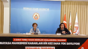Haber: Fatoş Erdoğan Meclis’te yasalaşan AYM kararlarını hiçe sayan kanunun iptal edilmesi için çağrıda bulundu. “5 Şubat torba yasası hekimleri cezalandırma yasasıdır. Anayasa Mahkemesi kararları bir kez daha yok sayılıyor. Cezalarla, ikazlarla bizleri susturamazsınız” yazılı pankartın açıldığı basın açıklamasını İstanbul Tabip Odası Yönetim Kurulu Üyesi Dr. Esin Tuncay okudu.  Tuncay, TBMM’ye 5 Şubat 2024 tarihinde sunulan …