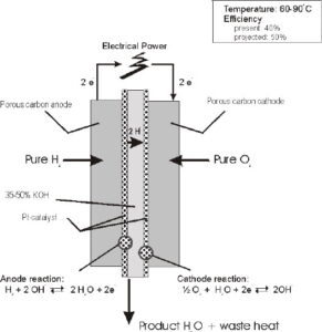 Yakıt hücresi türleri Yakıt pilleri, kullanılan elektrolit türlerine göre birkaç türe ayrılabilir. 1- Alkalin yakıt hücresi (AFC) Bu yakıt hücresinde elektrolit çözeltisi olarak KOH kullanılır.Alkali elektrolitlerdeki oksijen indirgeme kinetiği asit elektrolitlerden daha hızlıdır ve asil olmayan metal elektrokatalizörlerin kullanımı AFC’yi ekonomik hale getirir. Alkali sistemler, oda sıcaklığında çok iyi performans gösterir ve herhangi bir yakıt …