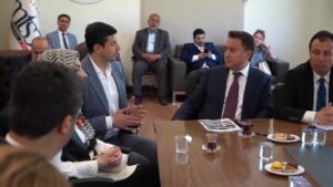 DEVA partisi lideri Ali Babacan, Kahramanmaraş Ticaret ve Sanayi Odası’nı (KMTSO) ziyaret etti. Oda Başkanı Mustafa Boltu ve yönetim kurulu üyeleriyle bir araya gelen Babacan, soruları yanıtlayarak açıklama yaptı. Babacan, “Döviz kuru nerede olmalı?” sorusuna şu şekilde cevap verdi: “11 yıldır ekonominin başındayım ve kur hakkında bir kez bile konuşmadım. Bugün de yarın da yapmam. …